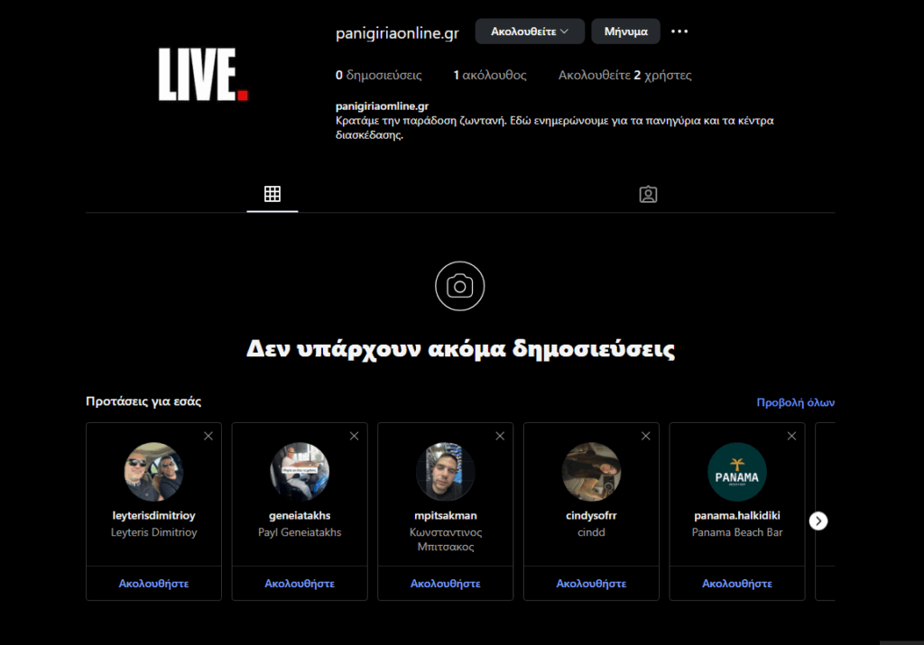 Πανηγύρια Ακολούθησε το panigiriaonline.gr στο istagram 30 Ιουλίου, 2025 Κάνε κλικ τώρα… Κράτα την παράδοση ζωντανή!!! https://www.instagram.com/panigiriaonline.gr/ Facebook X Pinterest Whatsapp Email istagrampanigiriaonline Σχετικές αναρτήσεις 7 Μαρτίου, 2026 ΤΩΡΑ: LIVE μουσική από το glentiradio 23 Ιανουαρίου, 2026 Δείτε την 1η ραδιοφωνική μετάδοση του glentiradio μέσα από το panigiriaonline… 24 Ιουλίου, 2025 Στείλε το δικό σου βίντεο από το πανηγύρι σου στο panigiriaonline Πλοήγηση άρθρων Προηγούμενο Πανηγύρι Previous post: Τα νέα ταλέντα προετοιμάζονται για τα πάλκα της παράδοσης – ΒΙΝΤΕΟΕπόμενο Πανηγύρι Next post: Στην Φολέγανδρο το βίντεο κλιπ του νέου τραγουδιού της Ηλιάννας Ζέρβα;