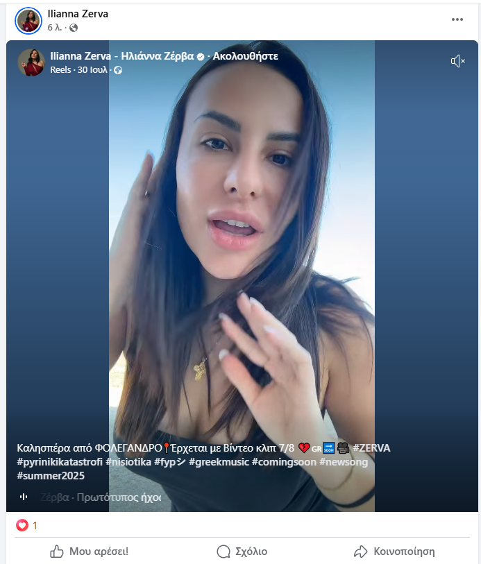 Με ένα post στην προσωπική της σελίδα στο fb η ”εκκριτική” Ηλιάννα Ζέρβα μας ενημερώνει για την ημερομηνία κυκλοφορίας του νέου τραγουδιού της.